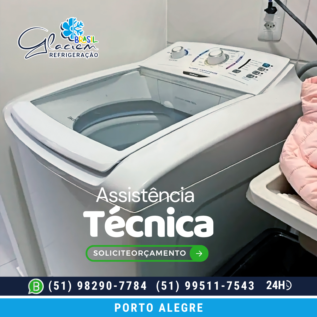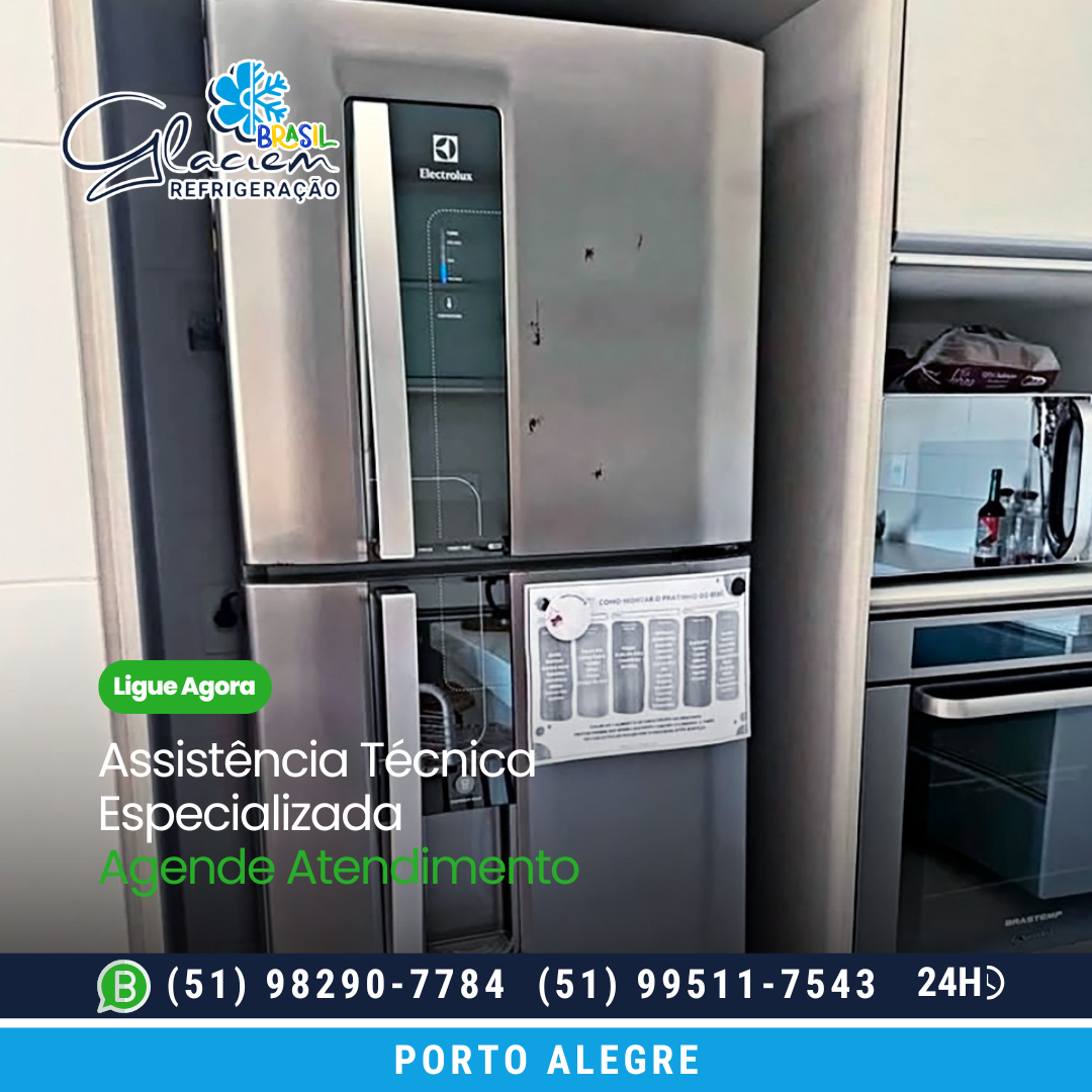 Glaciem Refrigeração: Conserto de Geladeira e Máquina de Lavar 24h Precisa de conserto imediato? A Glaciem Refrigeração é especialista em assistência técnica de linha branca em Porto Alegre desde 2000. Oferecemos conserto de geladeira, máquina de lavar, lava e seca, freezer e adega. Atendemos marcas como Brastemp, Electrolux, Consul, Samsung e LG. Diferenciais: - Atendimento em menos de 24h: Conserto realizado no local, sem recolher o aparelho. - Plantão 24 Horas: Atendemos sábados, domingos e feriados em toda POA. - Especialistas: Foco em Side by Side e Refrigeração Comercial. - Garantia: Orçamento sem compromisso e garantia atendida em 48h. Atendemos Zona Sul, Norte, Leste e Oeste. Ligue para atendimento imediato!